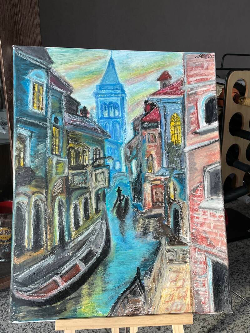 "Venedig bei Nacht" Mein erster Versuch mit Ölkreide zu zeichnen.
