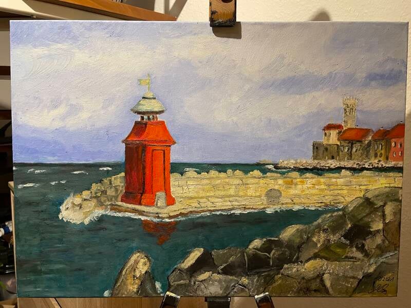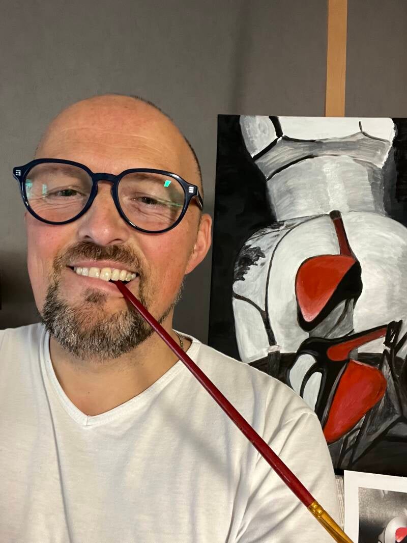 dieses Bild war ein Wunsch aus meiner Familie, ich habe es bewusst in schwarz ,weiss gemalt, jedoch zwei farbige Akzente