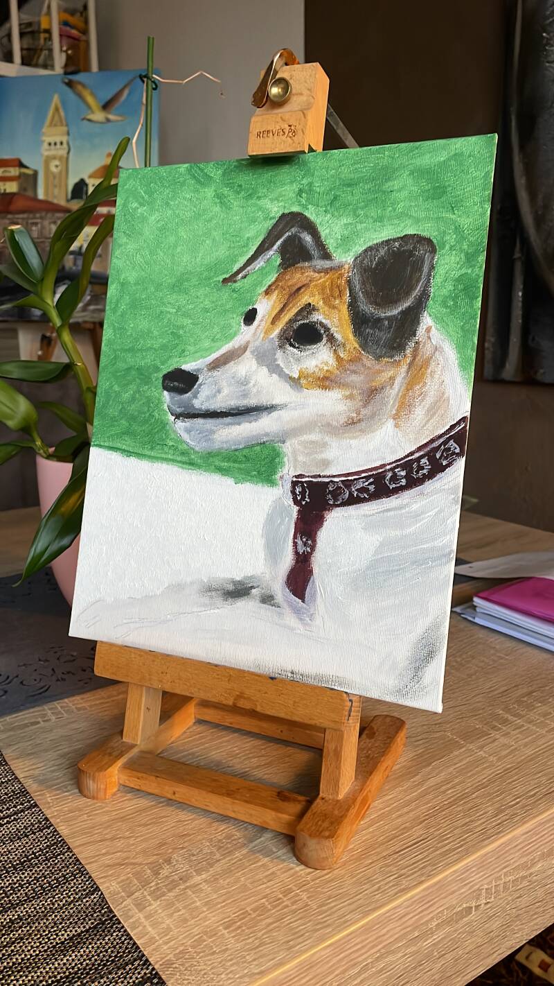 Darf ich vorstellen? Das ist Gisela. In Arbeit ist das Porträt der verstorbenen Hündin meines Freundes.
